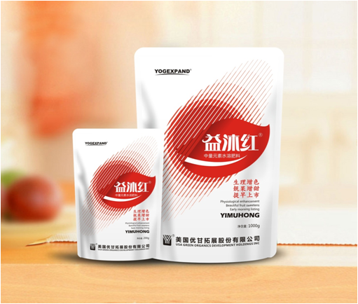 本品是由美国优甘拓展股份有限公司技术研发出品,含有有机钛、植物源花青素,内含花青素能有效的促进果实着色,是新型的天然生理着色源;内含维生素可有效促进植物的幼嫩组织的生长及植物体内花青素的形成,从而达到提早上色,上色均匀一致,并且改善果实色泽和亮度,促使果型周正早熟,提早上市。解决了果实生长不良、落果、上色困难等问题。平衡营养生长和生殖生长关系,有效改善大小年,增加产量。本品还含有多种螯合态的微量元素,植物易吸收利用率高,长期使用可提高植物免疫力。